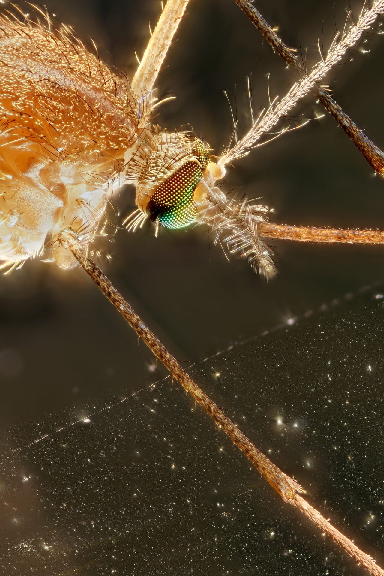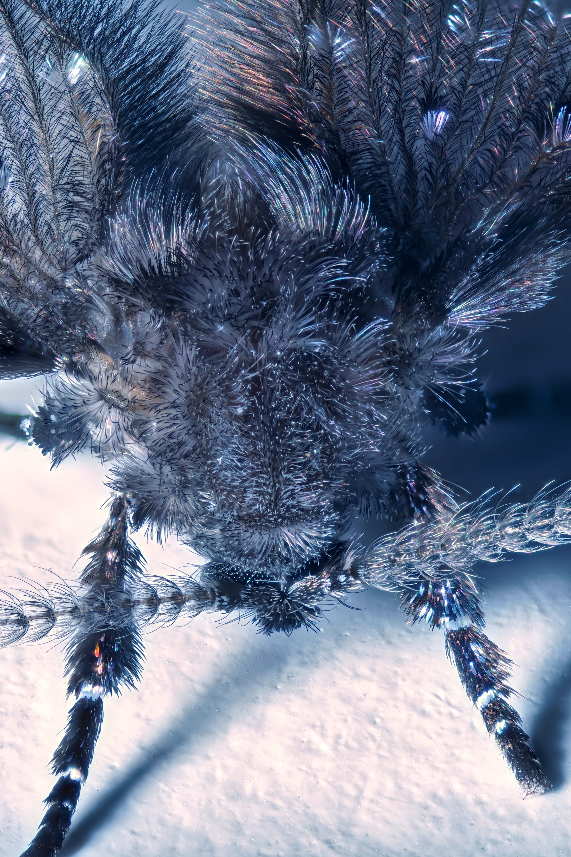 Ich fotografiere bis zu 5:1 Macro. Das heisst im Extremfall, dass das gesamte Bild nur eine Breite von weniger als 7mm darstellt. Somit werden Strukturen sichtbar, die dem bloßem Auge verborgen blieben. Oft werden dutzende Fotos zu einem zusammengerechnet, damit unsere kleinen Foto-Stars überhaupt erkennbar werden.